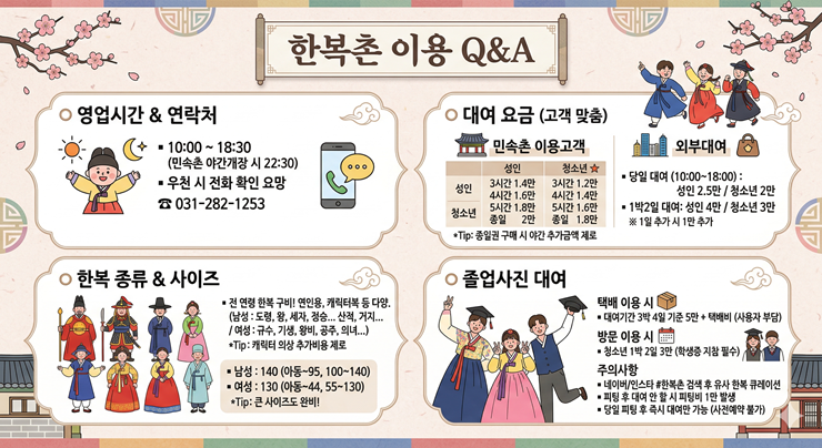 (주간)용인한국민속촌 한복대여 3시간 이용권