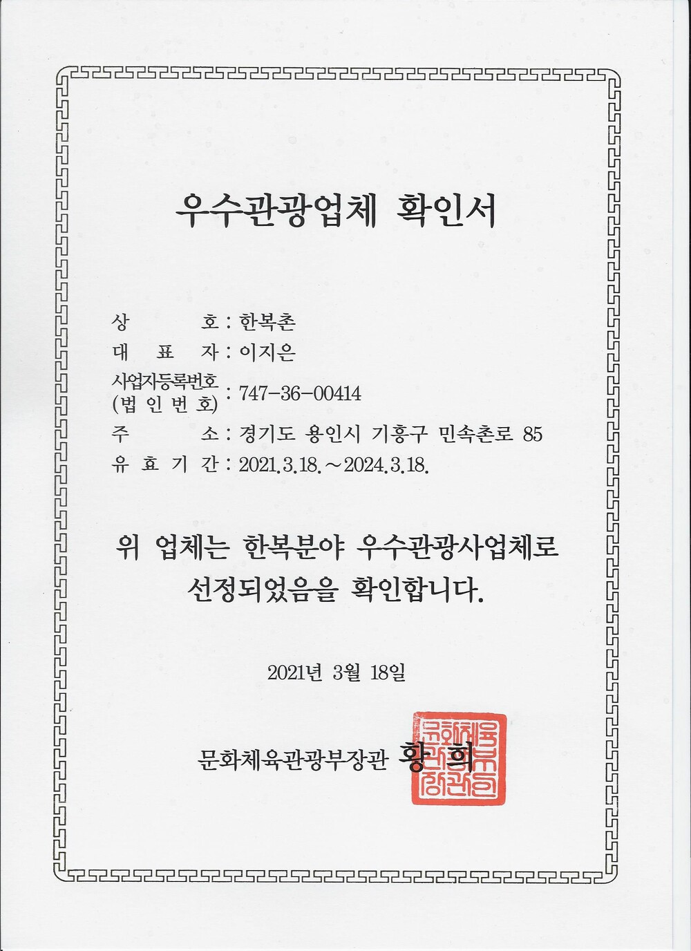 한복촌은 민속촌 폐점 시까지(현재 12시)
